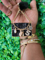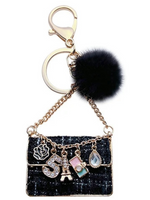 Material: Metal and rhinestone, purse shaped keychain with mink pom pom