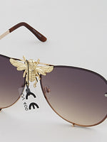 The Golden Flight Bee-Inspired Sunnies bring playful elegance to your everyday style with lightweight gold frames, etched detailing, and a soft nod to iconic luxury looks. Featuring UV-400 A/B protection and available in black, rainbow, or purple-tinted lenses, these statement shades keep your eyes safe and your style unforgettable.
