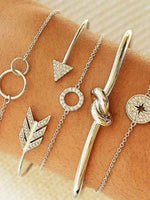 Set of 5: 2 cuffs, 3 bracelets. Silver Plated.